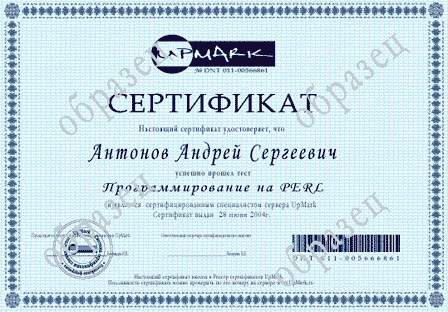 UpMark : Так выглядит сертификат UpMark на русском языке :